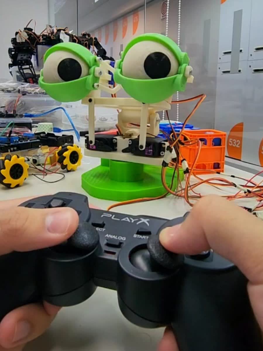 Dual-eye platform exploring rapid gaze shifts and blink behavior under joystick control.
