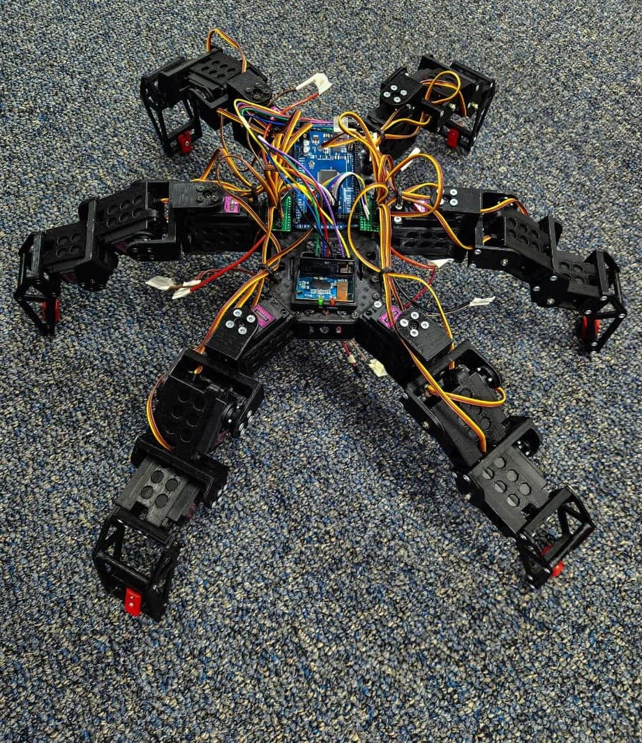 Hexapod locomotion prototype focused on stable gait generation using an Arduino-based controller.