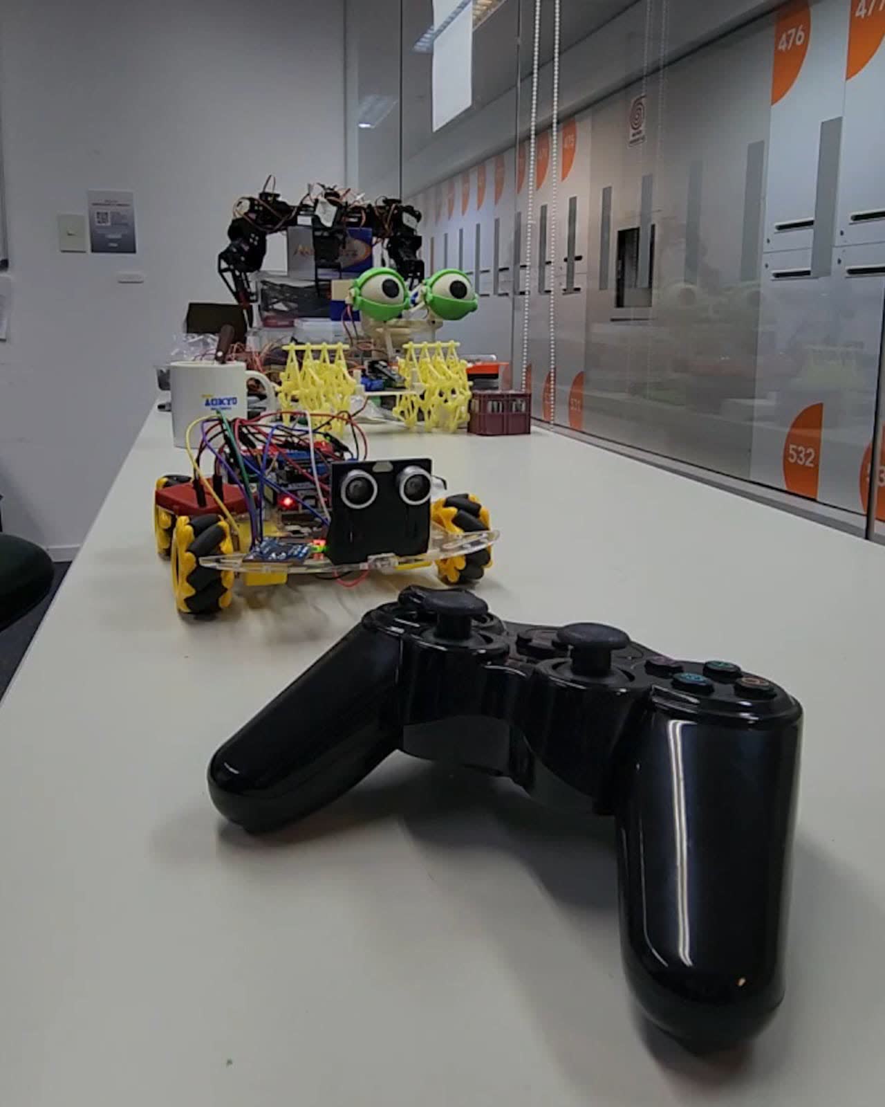 Omni-directional locomotion prototype for testing agile planar motion and obstacle-aware navigation.